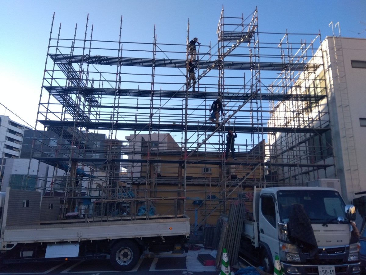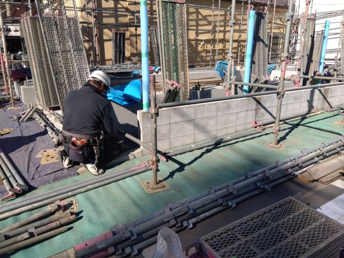 お知らせ K様邸 足場組み 2026.01.23 Tweet 基礎工事が完了して地上での工事が本格的に始まります。 建て方工事に先行して足場の組立てに入りました。 今回工事は3階建てで足場の高さが10mを超える上、掛けている期間も60日を超える予定のため労働基準監督署に届け出を提出しての作業です。 Category:今日のお仕事 Author:ハマー建設 株式会社 /blog/blog_comments/captcha/67798623 /blog/blog_comments/get_token ≪ K様邸 基礎工事 その6 K様邸 土台敷き ≫