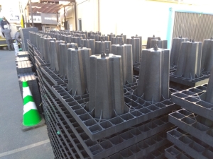 今日は本格的にスーパージオ工法の施工に入ります。まずは平らに敷き均した砂地盤の上にもう一度土木シートを敷き、その上にス-パージオ本体を組み並