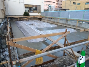 今回工事では地盤を深く掘れないため、地盤補強の杭を打つことができませんでした。ましてや計画の建物は木造の3階建て、より強固な地盤改良が求めら